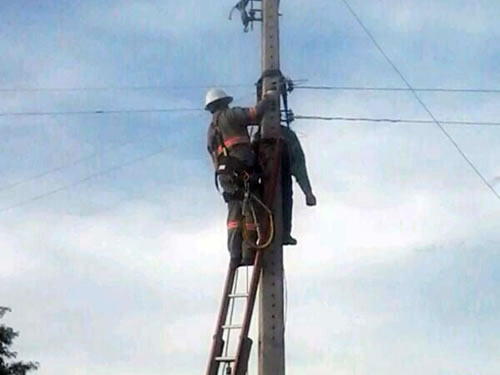 O corpo do eletricista ficou pendurado em poste após choque